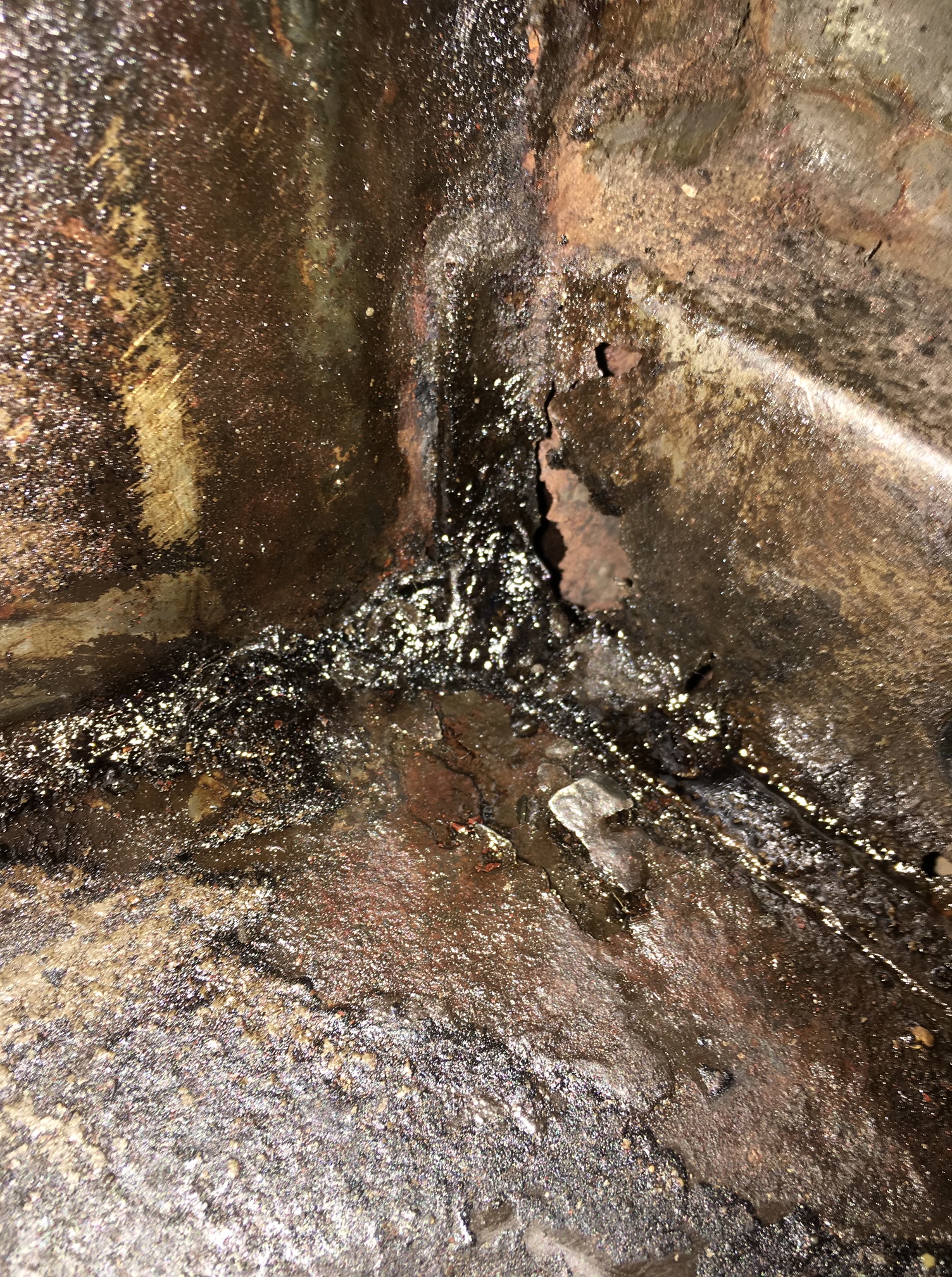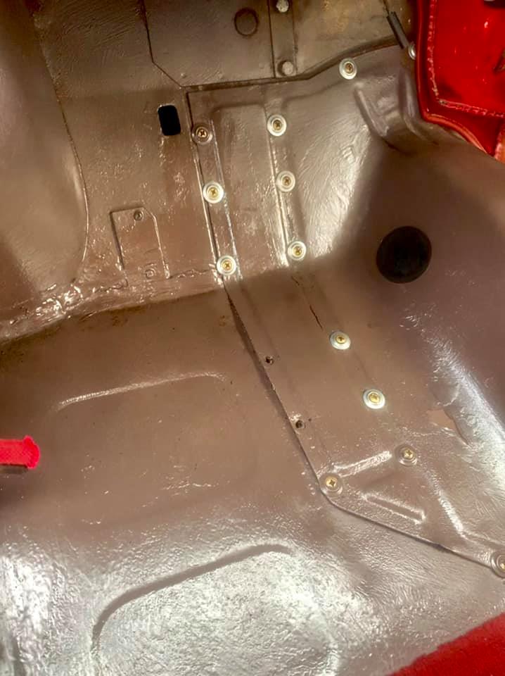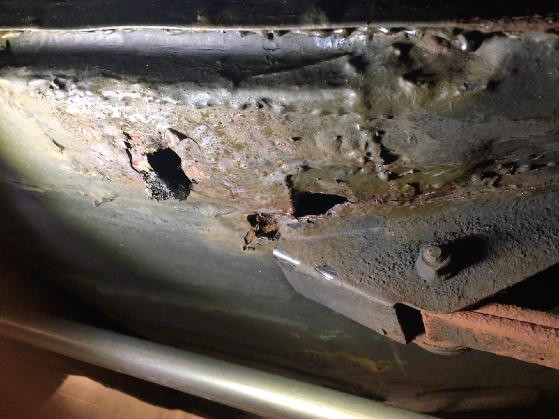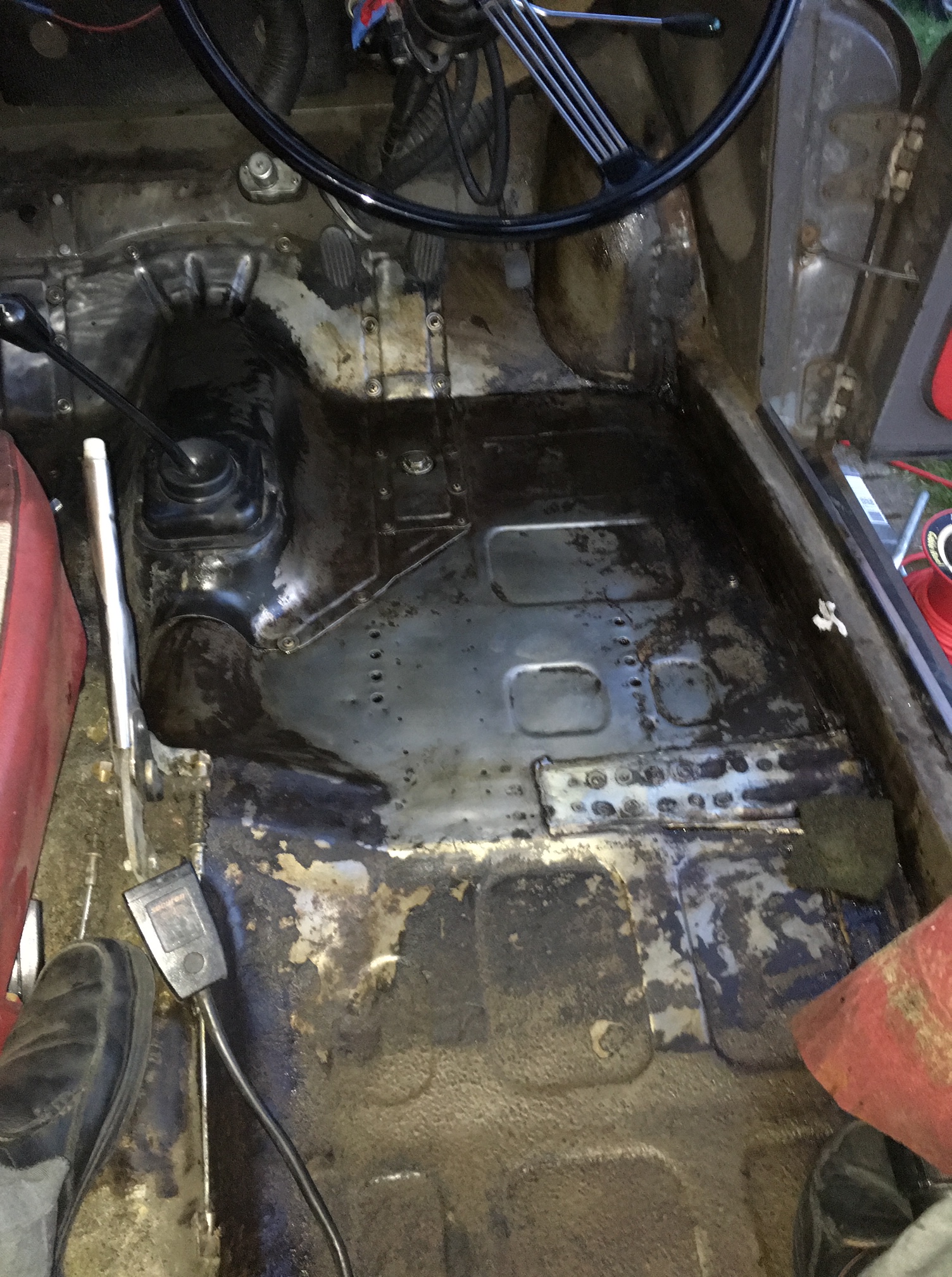 Drivers side floor. Note the previous repairs to the crossmember.