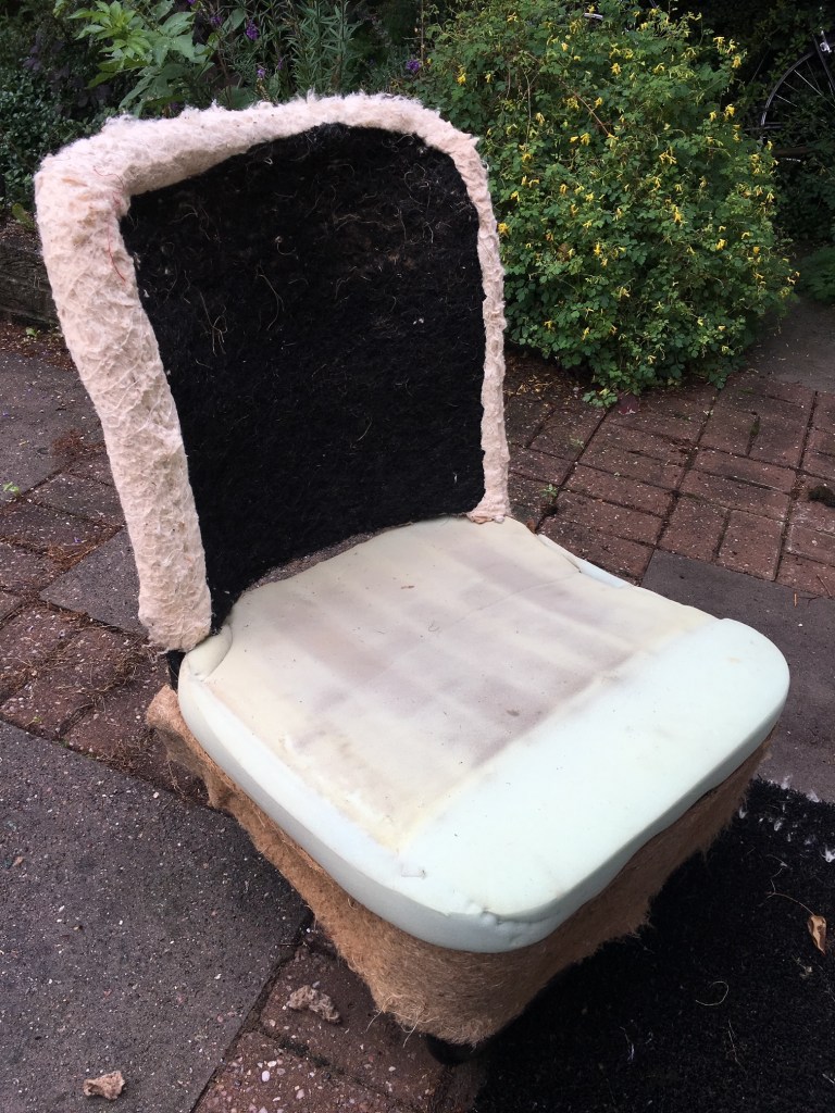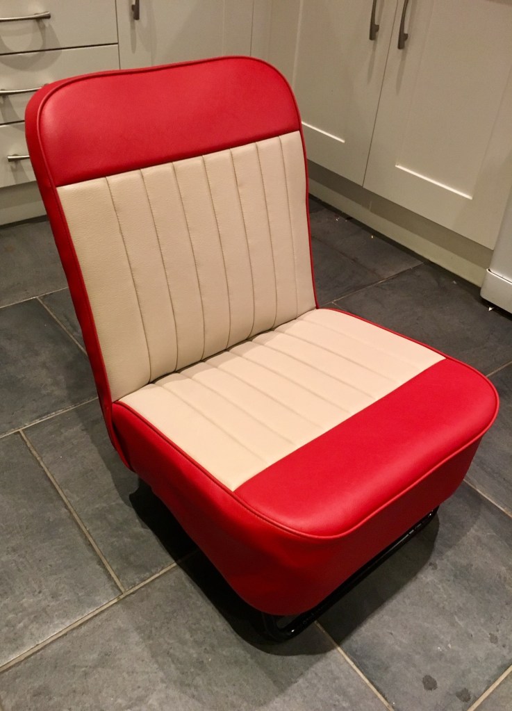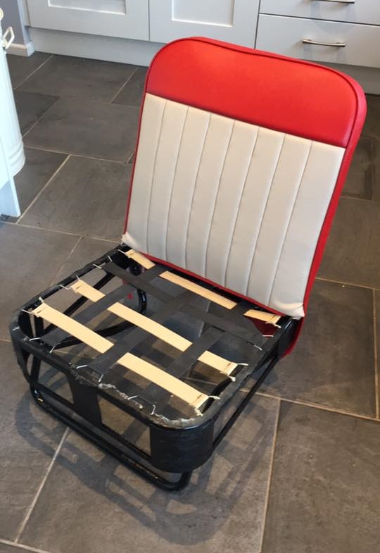 The front seats were a doddle to restore. I have no prior experience with this kind of thing, but with new covers, new seat straps, new foam bases, a can of spray adhesive, a bit of thread and a pair of scissors I was able to re-cover these in no time at all! Once I had sussed how to do the first one the second seat probably only took around 30 to 45 minutes to make like new.