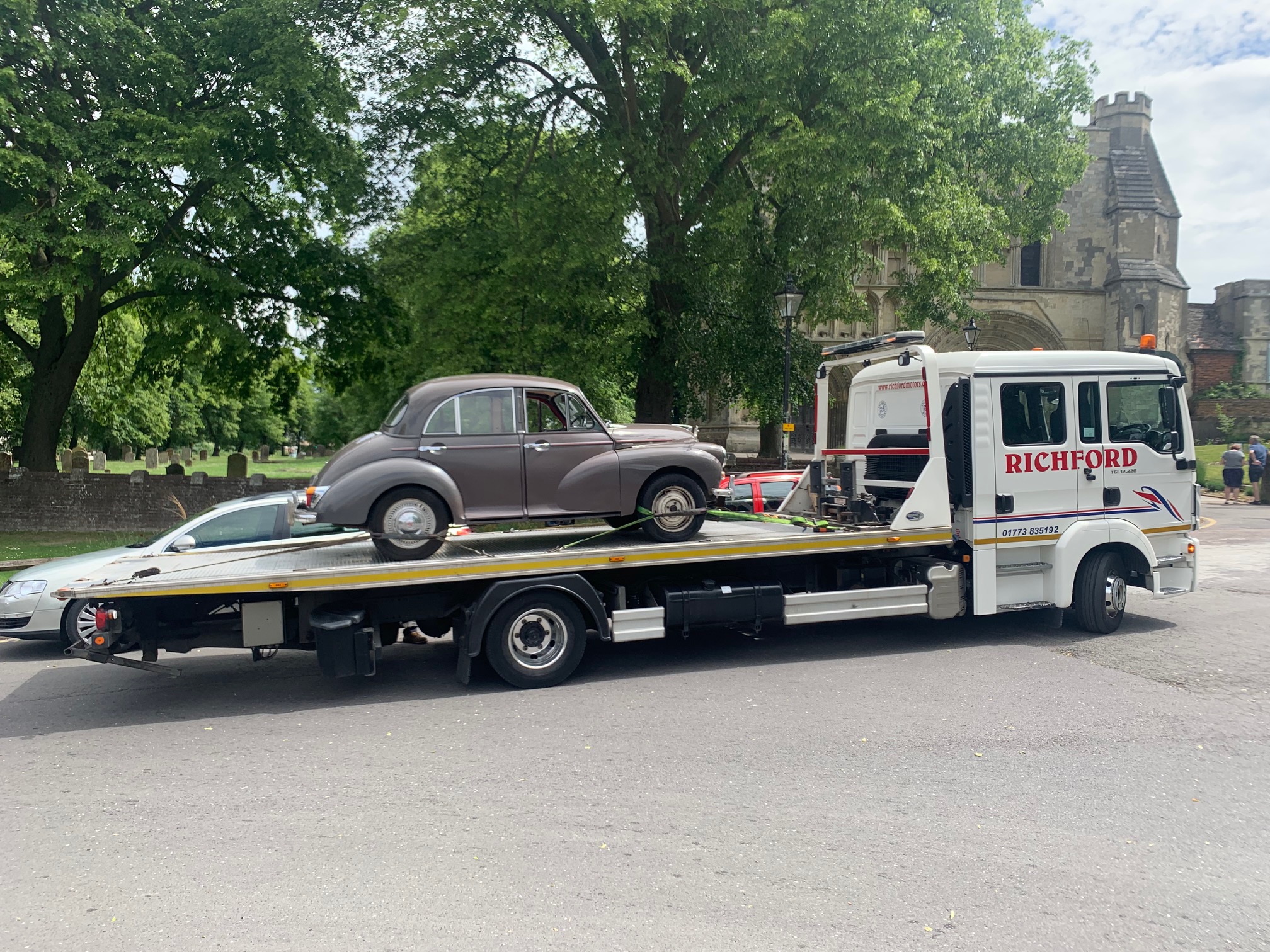 Up, Up and Away! The Morris is slowly winched onto the recovery truck.