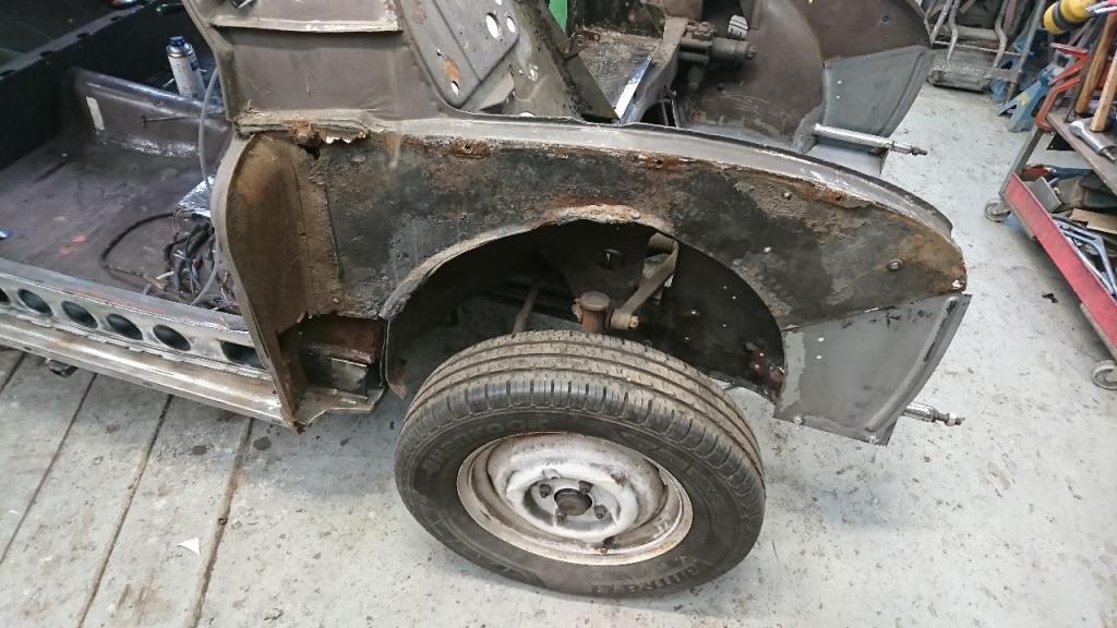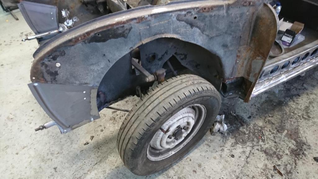 As per my last post you might recall that the rear arch flanges were pretty rotten and crumbly. Upon further investigation it turns out these points were very thin and by the time the worst of the rot had been cut-out there wasn’t much left anyway, so these have now been replaced with new panels.