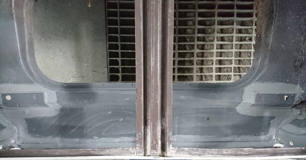 Notice the undersill/step – it seems to be warped, why could that be?Well, the undersill wasn’t attached to the A-post, and the filler that is there must be hiding something fairly rotten!