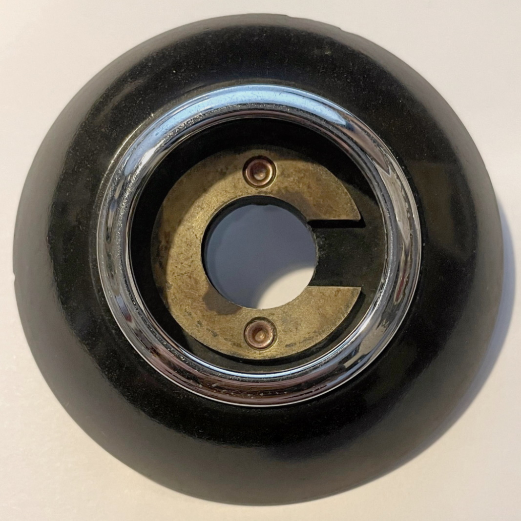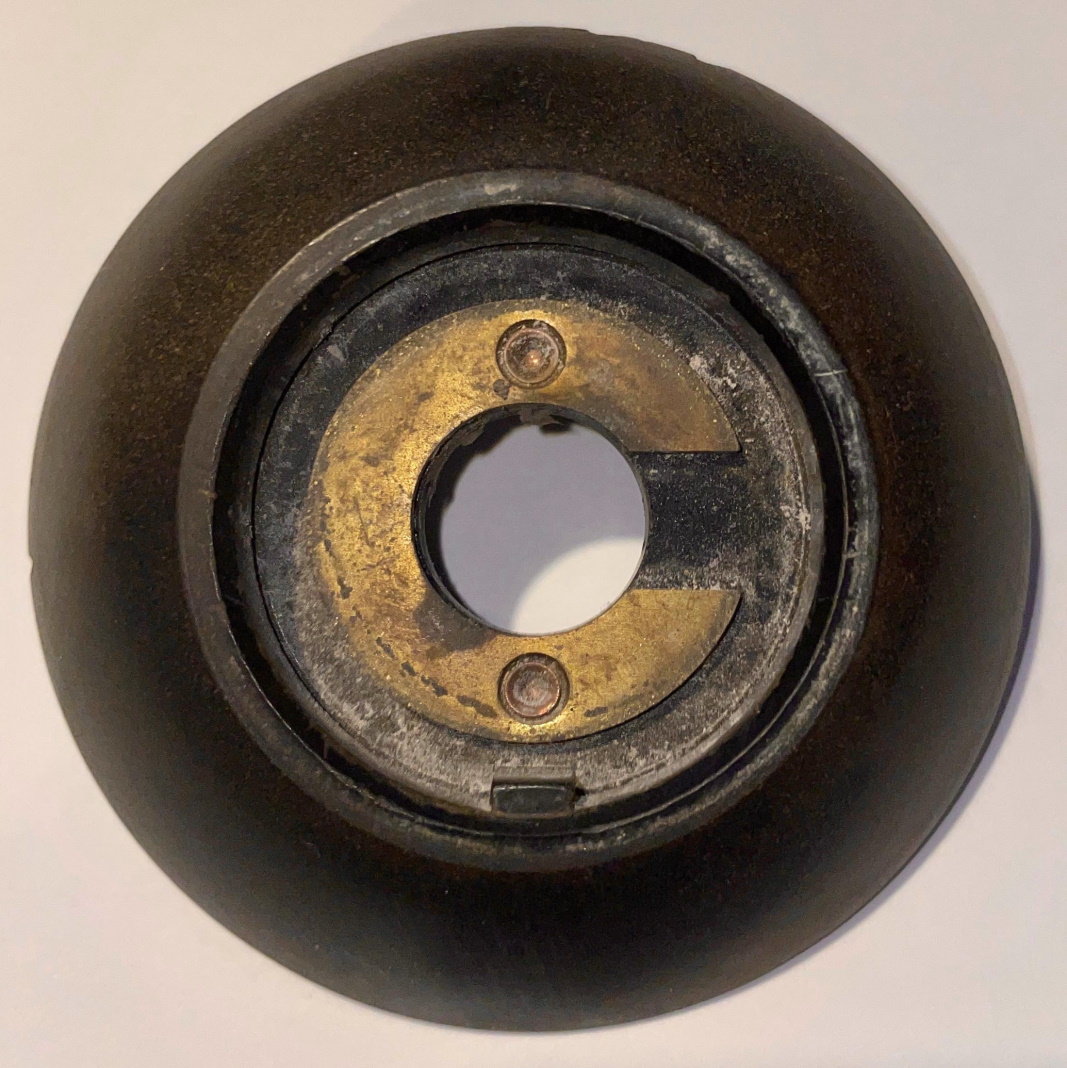 Firstly, the Bakelite outer part has become pitted and speckled, presumably from being in the sun for so many years, and the Morris ‘M’ motif had cracked and faded over time. I used some metal polish and a rotary tool to shine it up. I had been recommended Greygate Paste Polishing No. 5, an abrasive paste designed for GPO, used for maintaining rotary telephones. I’ve ordered some and will try it out at a later date.